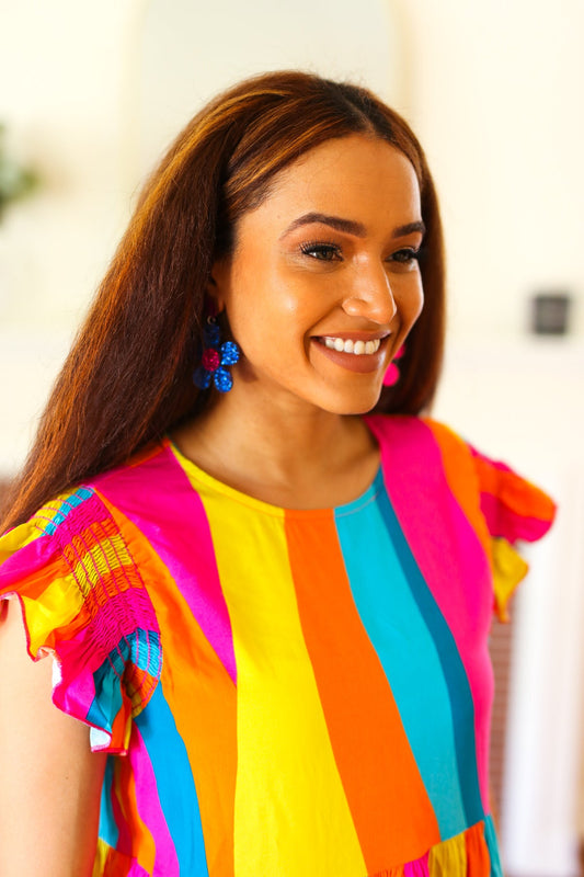 Boho Love Fuchsia Floral Print V Neck Dolman Sleeve Dress